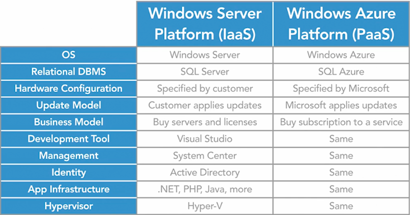 | Users subscribe to the software and only pay for what is used (eg. monthly subscription). | Allows customers to instantly provision servers, network, switches, firewalls and other physical devices. | Includes infrastructure (servers, storage & networking), however these components are configured and managed by the PaaS provider. |